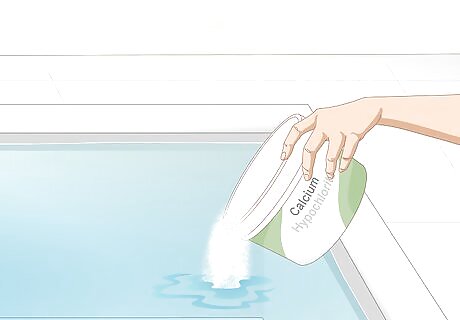 Shock the pool once every week at night. To shock the pool, add 3 lb (1.4 kg) of calcium hypochlorite shock. As chlorine works to clean your pool, it binds to other chemicals like ammonia and nitrogen, which not only render it effectively inactive but also create an irritant that can cause skin conditions like jock itch. To eliminate combined chlorine, shock your pool on a regular basis. Shock your pool after rainstorms and pool parties as well to sanitize the water.