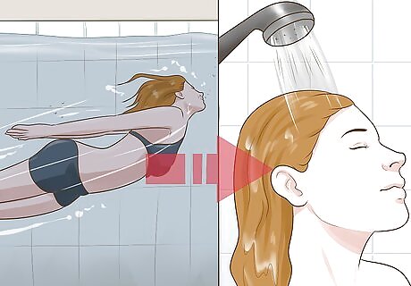 Wash out chlorine. Chlorine also makes your hair more vulnerable to sun damage. It's best not to swim in a chlorinated outdoor pool around midday, especially on days with a high UV index. When you do swim, shower right after leaving the pool to rinse out the chlorine.