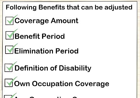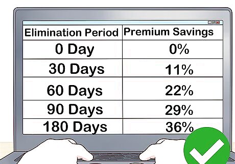 Look for a quick elimination period. The elimination period is the amount of time you have to wait before your policy coverage kicks in. The shorter the elimination period, the less time you will wait before beginning to receive benefits.