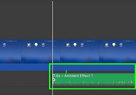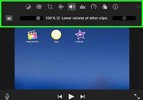 Edit your audio. You can turn up audio volume by selecting and holding down on the audio clip, and then drag it to the desired percentage or remove volume by selecting and holding down on the video clip, and then drag the volume cursor to 0%.