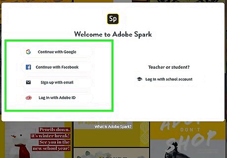 Select a sign in method. Once you select Create a Video you'll be directed to log in to an Adobe Spark account through email, social media, or an Adobe ID. Pick a method and follow the on-screen instructions to log in.