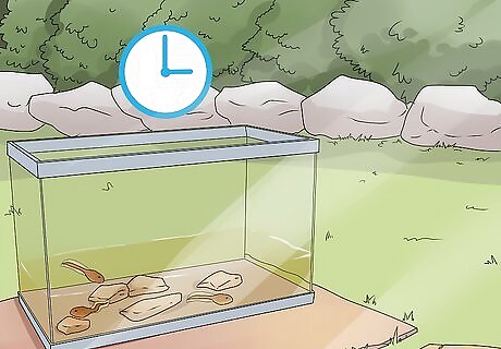 Keep the container where it gets a few hours of sun each day. Place the container somewhere in your home or outside where it will not get extremely hot or cold. Put it by a window or on a patio that gets a few hours of sun every day. Don't put the container anywhere where it will receive direct sun the whole day. This can overheat and kill the tadpoles.