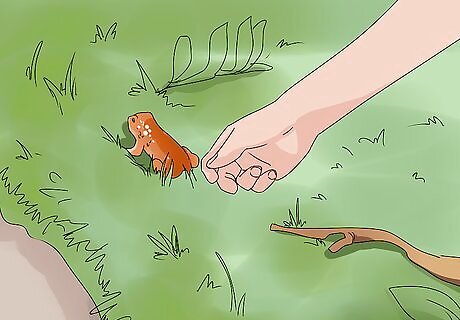 Release the newly-formed toads into the wild near a pond. The toads will stop eating the plants and mud and will need to eat insects to survive once they have completed their metamorphosis. Carry them carefully in their container to a pond and release them back into the wild so that they are in the environment they need to survive. If you want to keep the toads around, then you can create a habitat for them in your yard.