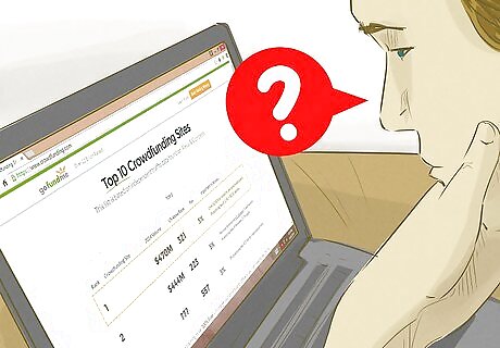 Determine whether crowdfunding is your best option. Before committing to an online fundraising campaign, you should consider why you are choosing this option to raise money versus more traditional methods, like a local fundraising event or dinner for a charity, or asking for loans from family or the bank for a business venture. Think about the advantages and disadvantages of crowdfunding as they apply to your project. Crowdfunding involves setting up a convincing online campaign that invites a large number of small donors to contribute money to a project. In return, these donors receive a product, ownership equity in the business, or, in some cases, a small gift of appreciation for their donation. Crowdfunding can be an incredibly effective way to raise money. You're able to reach a huge market of potential investors or contributors, avoiding the hassle of trying to convince one major investor or a bank that you're worth the trouble of lending money to. It also provides a certain feeling of engagement in your contributors or customers, which may lead to contributions on future fundraising efforts. However, crowdfunding also requires you tell an engaging story to your backers. If you can't provide them with a compelling reason to invest in a few quick paragraphs and a video, odds are you won't get many backers. In addition, if your backers expect to see some sort of progress, or a product, in return for their contribution. If you underestimate your budget or fail to deliver, you risk being sued. Finally, there are certain benefits to traditional types of investor-seeking, particularly for businesses. Startups gain from the knowledge and guidance of angel investors and institutional investors in starting and running their businesses. A crowdfunded business doesn't have these advantages.