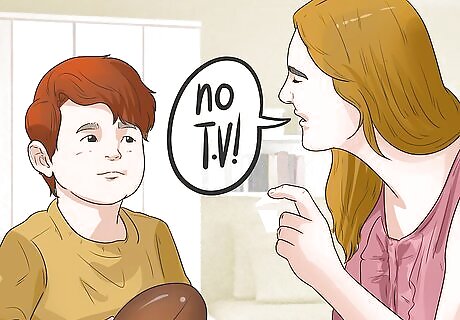 Reduce the amount of time a child spends watching television. Studies show that there can be some benefits to watching some amount of television in certain cases. For instance, children that watched certain enriching programs have slightly larger vocabularies, according to some research. Thus, you might decide not to cut out all television right away, but to gradually reduce the amount of time the child is allowed to watch TV. For instance, try reducing the amount of TV your child watches by selecting and monitoring everything your child watches by only allowing PBS (Public Broadcasting Service) programming. You can also suggest that the whole family watches a movie on television together on the weekend, but ban TV during the week. Similarly, you might have a rule that no television is permitted until the child completes all homework or chores. If you do watch some TV together, talk about it afterwards. This helps increase comprehension, raise vocabulary, and generally promote bonding.