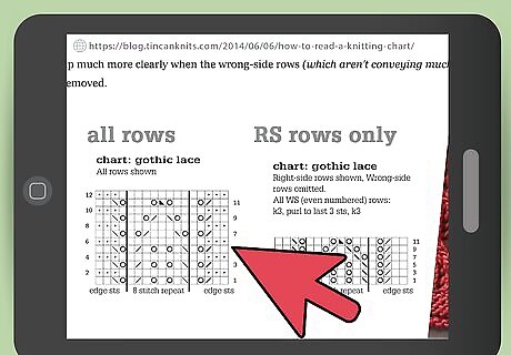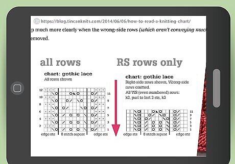 Choose a pattern with a chart if you’re advanced. Avoid a knitting pattern that provides only charts without written instructions if you are just beginning to read patterns, as it takes some practice to read charts. You may choose a knitting pattern chart over written instructions if you are more of a visual person and prefer reading instructions from symbols rather than words.