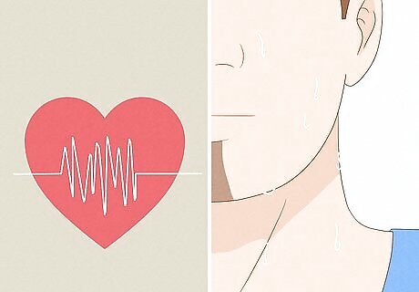 Notice autonomic hyperactivity. This condition refers to abnormalities of the autonomic system (the internal processes that govern your heart rate, pupils, salivary glands, sweating, and digestion). If you can feel your heart beating rapidly for no apparent reason and have recently stopped drinking, you’re experiencing a symptom of withdrawal. Another symptom of autonomic hyperactivity is sweating. Sweating might occur as a general symptom, or might be restricted to night time. If you wake up sweating and your heart is beating, you’re experiencing withdrawal. You might also suffer from rapid breathing (hyperventilation). Medical examinations might find you have high blood pressure while going through withdrawal.