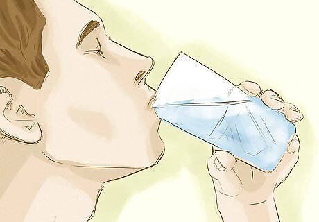 Stay hydrated. Drink plenty of water to replenish water lost through vomiting or diarrhea. Fruit juice, iced tea, and sports drinks are also good for replenishing your body's water content. Soups and smoothies are good options during meal times. Daily fluid intake (including fluids found in foods and all beverages, not just water) for women should be 11 8-oz glasses (2.7 liters) and 15 cups (3.7 liters) for men.