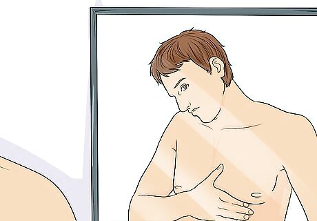 Inspect your breasts to see if they have grown excessively. If you have grown very large breasts (known as gynecomastia), you may be experiencing a symptom of male infertility. Talk to your doctor if you have large breasts. Gynecomastia is often confused with just having fatty breast tissue, so you should ask your doctor to look at your breasts. Your doctor may check for breast cancer or an infection of the breast tissue called mastitis.