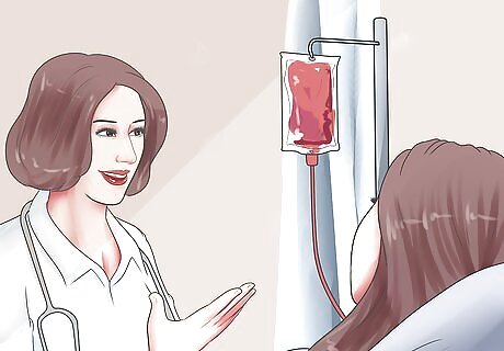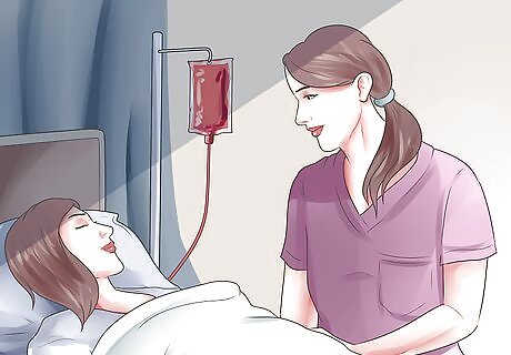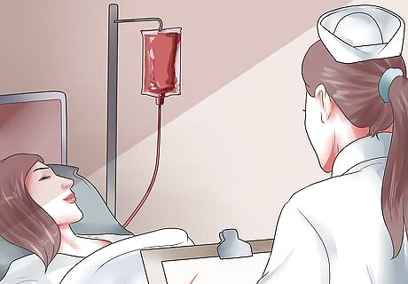 Check on any open wounds the mother may have sustained. If her bleeding was due to trauma, any open wounds will have been sutured by the physician. These wounds will need consistent monitoring to ensure that they don't re-open. There should be no more severe pain, although there may be some local pain coming from the sutured wound. If there was blood pooling inside the mother’s muscles or tissues, the treatment should have eradicated the purplish or black bluish coloring on the skin.