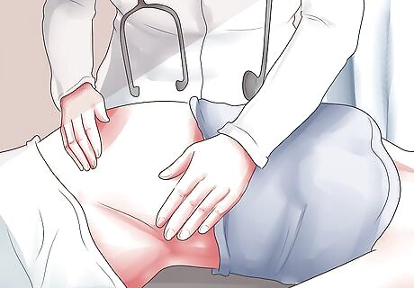 Evaluate the mother’s condition frequently. In assessing the mother, there are certain physical aspects that need to be checked regularly to determine if there is an ongoing postpartum hemorrhage and also to help determine the cause. These physical aspects include: The fundus (the top part of the uterus opposite the cervix), the bladder, the amount of lochia (the fluid coming out of the vagina that is composed of blood, mucus, and tissue from the uterus), the four vital signs (temperature, pulse rate, respiratory rate and blood pressure) and skin color. When assessing these areas, it is important to note what to look out for. Follow the steps below for more info.