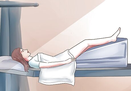 Put the mother in the Trendelenburg position. The mother should also be positioned in what is called a modified Trendelenburg, where the legs are elevated by least 10 degrees and at most 30 degrees. The body is horizontal and the head elevated a little bit as well.