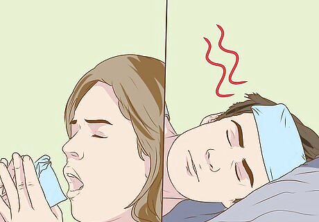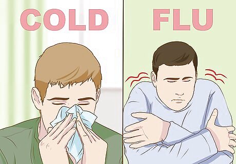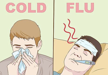 Think about the severity of your symptoms. With a cold, the symptoms you experience are less severe. While you may experience things like a runny nose, sore throat, and other ailments, you will not feel completely run down. With the flu, symptoms will be more severe and you will likely struggle with simple tasks. During the first couple days of the flu, symptoms can include aches, chills, dizziness, nausea, vomiting, lethargy, and a flushed face. If the flu causes a high fever (103ºF / 39.4ºC or higher), you may experience hallucinations, confusion, dehydration, irritability, or convulsions.