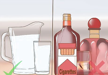Stay hydrated and avoid cigarettes and alcohol. Drinking plenty of liquids is a basic but important treatment. Cut out smoking and alcohol while you still have symptoms.