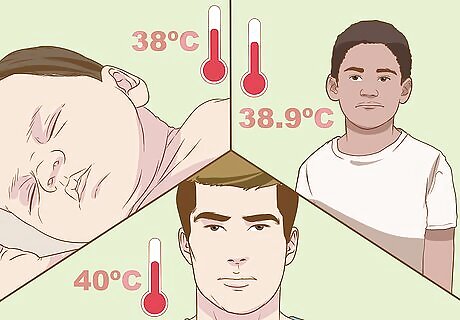 Identify a dangerous fever based on age. A high fever may require prescription anti-viral medications to prevent more serious problems such as pneumonia. The "danger point" depends on your age: Infants under 3 months: call a doctor immediately for a temperature of 100.4ºF (38ºC) or higher. Children 3 months to 5 years: call a doctor immediately for a temperature of 102ºF (38.9ºC). Adults and children age 5 or older: if an oral temperature of 104ºF (40ºC) lasts for more than 4 hours, call a doctor. Adults 65 and older: this group is at higher risk of serious complications from the flu, and in some cases may not have a high temperature despite a bad infection. When in doubt, call a doctor.