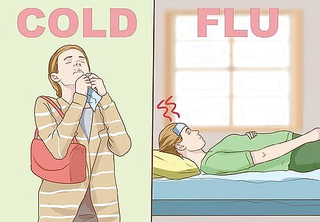 Think about risk factors. Both the cold and the flu are contagious diseases. Think about any sick people you've been exposed to and whether they had a cold or the flu. Cold symptoms are most contagious during the earliest stages of infection, when the disease is less severe. If you were recently around someone who was experiencing mild sniffling or sneezing, you may have a cold. Flu symptoms typically appear two or three days after you were exposed to the virus, but it can take anywhere from one to seven days.