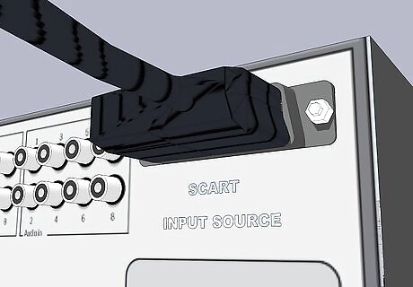 Plug one end of another SCART cable into your DVDR "output" and the other into your TV "input".