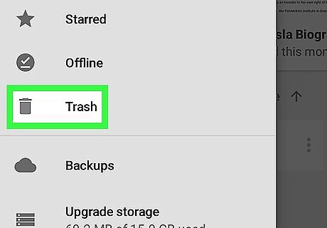 This wikiHow teaches you how to recover any document you deleted from your Google Drive when you're using an Android.