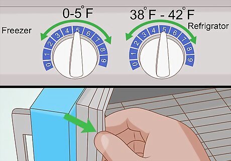Use your refrigerator and oven efficiently. Adjust your refrigerator temperature to 38 to 42 °F (3 to 6 °C) and your freezer temperature to 0 to 5 °F (−18 to −15 °C). Check that the seal on the oven door is intact and avoid peeking in the oven more than necessary, as this lets out heat and increases the cooking time. If your fridge has a power-save switch, make sure it is on, and always check that the door seals tightly. Use your microwave, rather than your oven, for reheating small items.