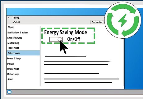 Buy or lease computer monitors with energy-saving features. Many newer computers will have built-in energy-saving features that can reduce the amount of electricity used by your office. If you’ve been using the same desktop for many years, consider upgrading to a new version that has energy-saving features. When not in use, allow your computer to power down or hibernate rather than display a screen saver.