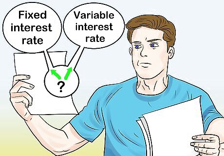 Choose the best consolidation offer for you. When comparing offers of consolidation you should look for the lowest interest rate possible. You may also need to decide between a fixed or variable interest rate. This is typically left up to personal preference. A fixed rate will stay the same throughout the entire term and is usually higher and a variable interest rate will often start lower, but may raise throughout the term of the loan.