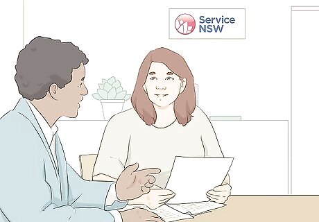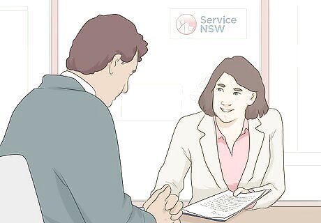 Take your application and documents to a registry or Service NSW location. You need to submit your application in person so RMS can verify your identity and that you're entitled to register the vehicle. Make sure you have your driver's license or another valid government-issued photo ID with you. #*If you're not familiar with the nearest Service NSW location, search at https://www.service.nsw.gov.au/service-centre. You can enter your suburb or postcode to pull up a list of nearby locations. On a mobile device, you can also search from your present location if you have location services turned on.