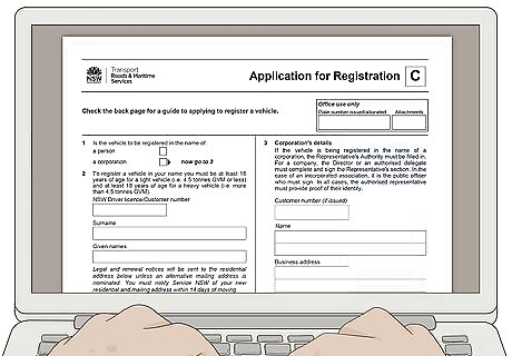 Complete the application for registration. Go to https://www.rms.nsw.gov.au/documents/about/forms/45070093-registration.pdf to access the application online and fill it out on your computer. Provide information about your interstate registration along with information about the car. When you've finished filling out the application for registration, print it off and sign it. You'll need to take it with you when you apply to register your car in NSW.