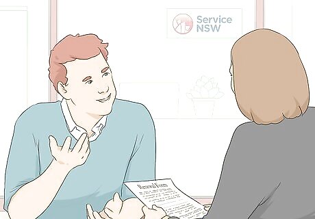 Go to a Service NSW location in person if you can't renew online. If you don't have reliable internet service or don't feel comfortable renewing online, you can do so in person just as you did for your initial registration. Additionally, you're required to register in person if any of the following apply to you: Your car has been unregistered for more than 3 months You ordered special number plates that you haven't gotten yet Your car was conditionally registered and needs a special inspection or changes to the operating conditionsTip: When renewing in person, bring your old registration certificate, renewal notice, and a valid, government-issued photo ID.