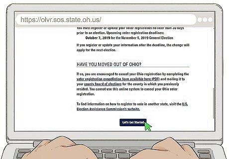 Navigate to the Ohio Secretary of State’s website to begin. Voter registration in Ohio is handled by the Secretary of State’s office. If you have a computer, smartphone, or tablet, it’s quick and easy to register online. Begin at: https://olvr.ohiosos.gov/. Click the link at the bottom of the page that says “Let’s Get Started.” You can also register to vote for free at vote.org. The website will send you various notifications about upcoming elections if you register through them. Start the process at: https://www.vote.org/register-to-vote/ohio/.