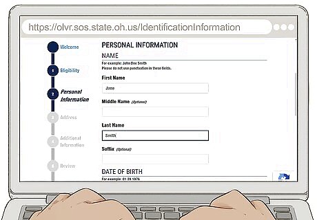 Complete the web forms with your personal info and address. As you click through the voter registration web pages, you’ll be asked to confirm your voter eligibility and to provide your name, date of birth, and the number on your Ohio driver’s license. Click “Continue” to move on once you’ve filled out a page. If you realize that you made a mistake on a previous page, you can always click the “Back” button. Avoid clicking on your browser’s back arrow.
