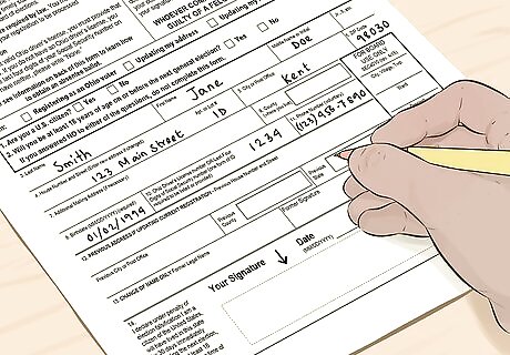 Indicate what’s changed for you and fill out the registration form. With a blue or black ink pen, check the box that says “Updating my address,” “Updating my name,” or both boxes, depending on your individual case. Fill out the entire form. If you’re changing your address, include your previous address where indicated. Or, if you’re changing your name, write out your prior name where indicated. Write as neatly as possible so that the person entering your information can read it.
