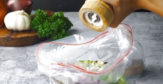 Place your leftover steak in a zip-close bag. Add ingredients and seasonings of your choice, such as minced garlic, chopped onions or shallots and salt and freshly ground black pepper. Seal the bag securely, then place the sealed bag in a saucepan filled with simmering water. Heat until the meat is hot, about 4 to 6 minutes, depending on the thickness. This method isn't great if you have more than one steak to reheat. If you have a family waiting for leftovers, you'd be better off sticking them in the oven for a bit or directly using a frying pan.