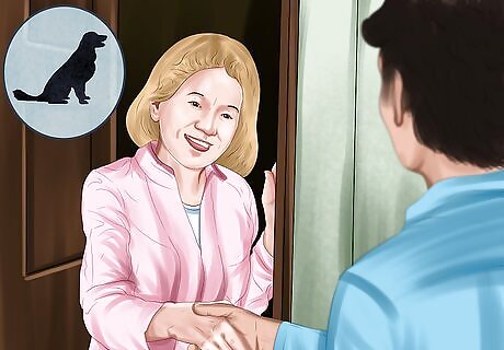 Schedule home visits. Visit the homes of the prospective owners who impressed you over the phone. Home visits will allow you to see what type of environment your dog could be living in, and observe how your dog reacts to the prospective owner and their house. These visits can also be a time for you to ask more questions. Schedule multiple home visits. During the first visit, your dog may be nervous and stay close to you. During the next few visits, your dog will likely relax a bit and interact more with the prospective owner. As you talk with owner, pay close attention to your dog. If your dog isn't warming up to the home or the owner after a few visits, then that living situation may not be right for it.