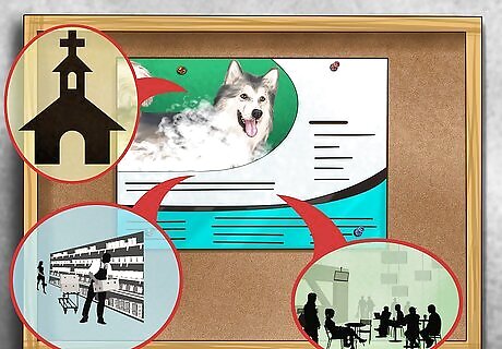 Place flyers in your area. The more you can get the word out about your older dog needing a new home, the better. Place copies of the flyer on bulletin boards in churches, grocery stores, and community centers. You can also put flyers in libraries and coffee shops. Veterinary offices and pet supply stores are other great locations for flyers.