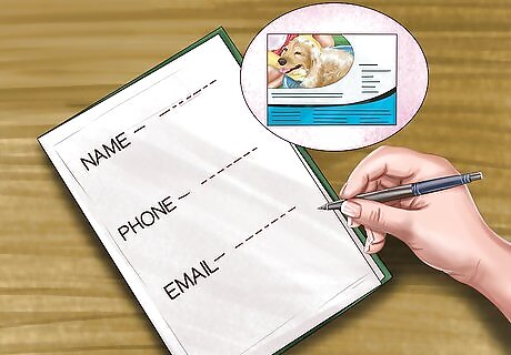 Create a flyer of your dog. A well-designed color flyer can attract many prospective new owners. Taking the time to make a high quality, informative flyer can help you re home your older dog. Include information about your dog's overall health, likes, and dislikes. Also, include information about your dog's physical appearance, positive personality traits (warm, friendly, etc), spay/neuter status, and any limitations (not good with cats or children). Place your contact information on the flyer (name, phone number, email address). For your personal safety, do not include your home address on the flyer. Don't forget to proofread your flyer. Spelling or grammatical mistakes could hurt your chances of re homing your older dog.