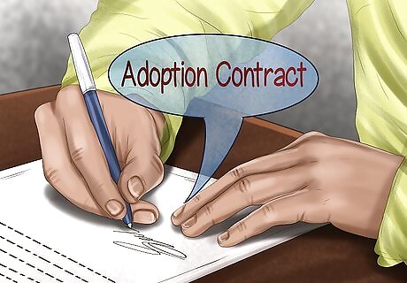 Sign an adoption contract. When you've selected an owner, do not just hand your dog over to that owner. Have them sign a contract to formalize the adoption. Fortunately, you don't have to come up a contract from scratch. The website http://www.aforeverhome.org/forms/sample-adoption-contract/ has a sample contract you can use to draft your own contract. An adoption contract, like other contracts, is legally binding. Make sure both you and the new owner understand and agree to all terms in the contract before signing it. Because it may be at least several weeks before you can successfully re home your dog, develop the contract as you search for and screen prospective owners.