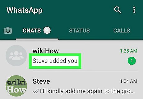 Wait for the group admin to add you to the group. If you're added to the group chat, you will receive a notification and the conversation will appear at the top of your CHATS list.