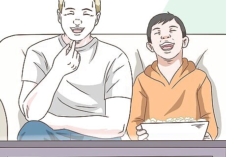 Watch a funny movie. Find something funny to watch on television or find a comedy at the local theatre. See if any friends or family members would like to check out a funny movie with you. Laughing helps to relieve tension in the body and mind. Sharing a laugh with someone else also helps bring a sense of ease to the relationship.