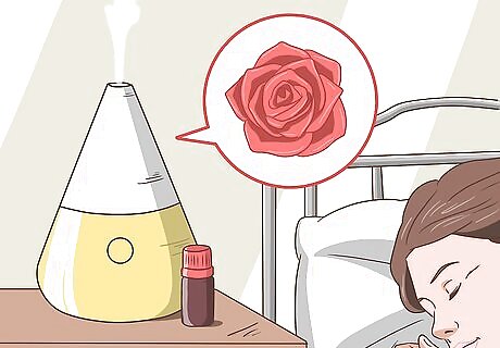 Use relaxing scents. As an alternative to a night cap, you could try aromatherapy. Find a relaxing scent such as lavender essential oil. Put a few drops in an aromatherapy diffuser before your go to bed. The scent will create a relaxing atmosphere that is conducive to sleep. Try one of the following relaxing scents: Lavender Rose Vetiver Ylang ylang Bergamot. Chamomile Frankincense