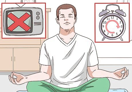 Try meditation. You may want to consider meditation as part of your relaxation routine. Find a comfortable place to sit in a quiet room. It is best to find someplace that is relatively free from distractions such as television, radio or other people. Set a timer or use a meditation app on your smartphone. Relax and observe your breath until your timer goes off. Allow thoughts to come and go, like clouds drifting by. When you notice you have been distracted, bring your attention back to your breath. Research has shown that meditation can help you manage emotions and develop self-compassion, amongst other benefits. You can download meditation apps such as Headspace, Calm and Buddhify. You can also try a guided meditation by downloading a meditation podcast or finding one on YouTube. You can learn about specific meditation techniques by visiting a meditation center. You may find meditation groups in your area on Facebook or Meetup.com.