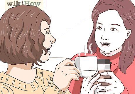 Share a cup of tea or coffee. Catch up with a friend over a cup of tea or coffee. Sharing stories with a friend is a great way to relax. Although you may assume this is easier with alcohol, you can experience similar feelings of relaxation by sharing stories over tea or coffee. Find a nice place with non-alcoholic drinks and catch up with someone in your life. Sharing thoughts and feelings with others is a great way to relieve stress. Call up a friend you haven't seen in awhile and ask them for tea or coffee. You can even make an event out of trying new types of specialty teas or coffees.