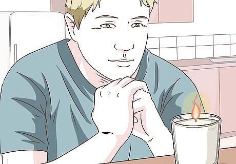 Light a candle or sit by the fireplace. One of the oldest ways of relaxing in the evening is to sit around a campfire. Try sitting by the wood stove, fireplace or a nice candle. You can just watch the movement of the flame and let your mind wander until you feel ready to go to sleep. Remember to blow out the candle before falling asleep.