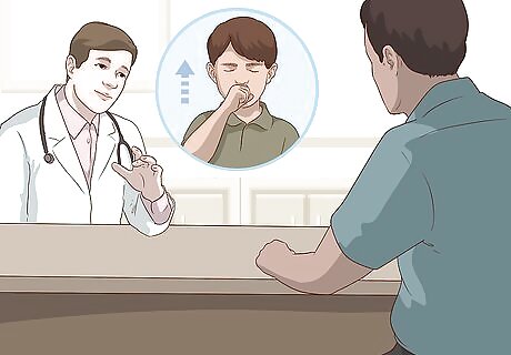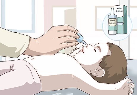 Use saline drops to loosen nasal mucus. Nasal mucus can cause post-nasal discharge that leads to coughing, but using saline drops may help. Saline is a salt water solution that you squirt into the nose to clear up mucus. Squirt 3 drops in each nostril and have your toddler blow out to rinse. Repeat until the solution comes out clear. You can buy saline solution at drug stores, or make your own by combining 1/2 tsp (2g) of salt with 1 cup (240 mL) of water that has been boiled and cooled.