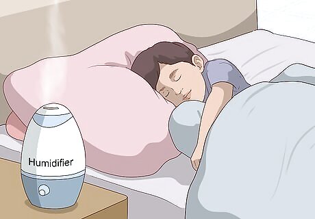 Use a cool water humidifier in your toddler's room at night. Moist air helps keep the air in the nose and throat from drying out. Running a humidifier at night can help your toddler sleep comfortably and cough less. If you don't have a humidifier available, hang a damp towel in your toddler's room.