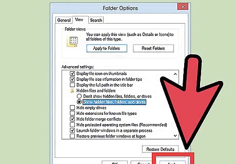 Apply the changes. On the View tab, click “Apply” on the bottom of the window. If you’re using Windows 8 and later versions, you can simply navigate to the Menu Bar and navigate to the View tab and uncheck the “Hidden files” located on the right side.