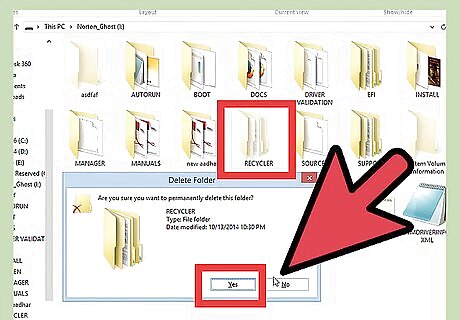 Delete the Recycler. All the hidden folders will appear on your USB drive, including the Recycler. Simply delete it as well as any threats. To delete, right-click to the file, then choose “Delete,” or simply click on on the file and press “Delete” on your keyboard.