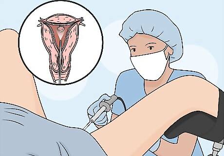 Visit your gynecologist for a pelvic exam and pap smear. If uterine polyps extend beyond the cervix, your gynecologist may be able to identify and diagnose them during a basic pelvic exam. A pap smear can also reveal the existence of uterine polyps. While your gynecologist may be able to diagnose uterine polyps right away, further testing is typically required to confirm the diagnosis. At your appointment, your gynecologist will also ask you questions to eliminate other possible causes of your symptoms.
