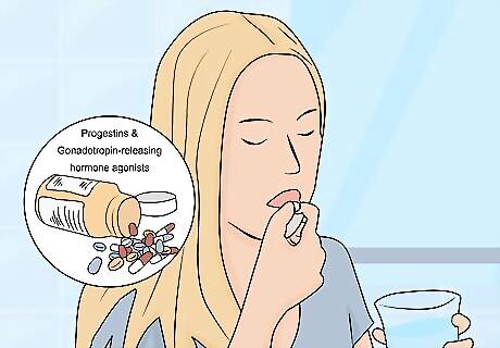 Take medication to lessen your symptoms. Hormonal medications, such as progestins and gonadotropin-releasing hormone agonists, can lessen the symptoms of uterine polyps. At times they can even shrink the polyps. However, taking medication typically doesn't eliminate the polyps entirely. The benefits of medication are typically relatively short-lived. If you stop taking the medications, your symptoms will return and might be more severe than they were when you started the medications. Hormonal medications may also have side effects that may be more uncomfortable for you than your uterine polyp symptoms. Discuss possible side effects with your gynecologist before committing to a hormonal medication.