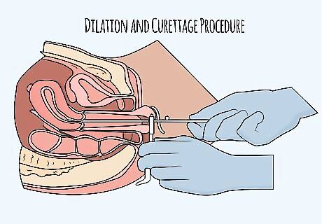 Submit to a dilation and curettage procedure if necessary. In this procedure, your gynecologist dilates your cervix with the assistance of surgical instruments or medication, then scrapes the inner walls of your uterus with a curette to remove uterine tissue. Some curettes are sharp, while others use suction. Recovery is generally the same regardless of which type of curette your gynecologist uses. Your gynecologist may use twilight sedation or general anesthesia to put you under during the procedure. Depending on the anesthesia used, you may have to wait in a recovery room for anywhere from a few minutes to a few hours for the effects to wear off. After the procedure, cramping and bleeding are to be expected, similar to having a normal period.Tip: A dilation and curettage procedure can also be used to confirm a diagnosis of uterine polyps. However, gynecologists can typically use less invasive means to confirm a diagnosis.