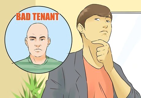 Carefully screen applicants. Asking a couple questions and then handing over the keys is not sufficient and invites disaster. Use your instincts regarding potential clients, but also verify all the information they provide. Create a standard application form, which includes spaces for name; date of birth; Social Security number; contact information; previous addresses for at least five years; current and previous employers; emergency contacts; a “release of information” statement (which permits you to follow up with past landlords and employers, etc.); and a signature. Templates are available online. Make sure the application is filled out completely. Charge an application fee if desired — see what is common in your area. Follow up on the information, verifying employment and income, and contacting all recent landlords. Pay to do a background check (the application fee can cover this). Rely on an established company to verify information about your potential tenant. Smartmove, for instance, is operated by TransUnion and offers a straightforward process.